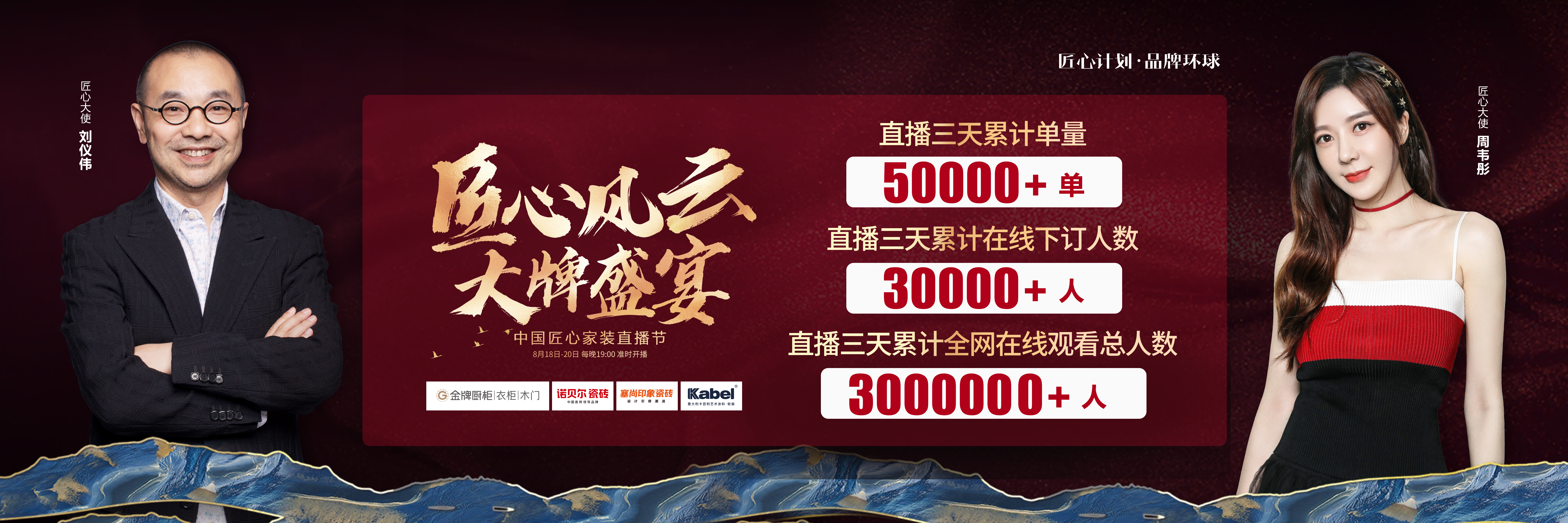 由公海贵宾会厨柜、诺贝尔瓷砖、塞尚印象瓷砖、卡百利艺术涂料联合缔造,创赢科技系统支持全案营销执行的“匠心风云 大牌盛宴”中国匠心家装直播节于8月20日圆满落...